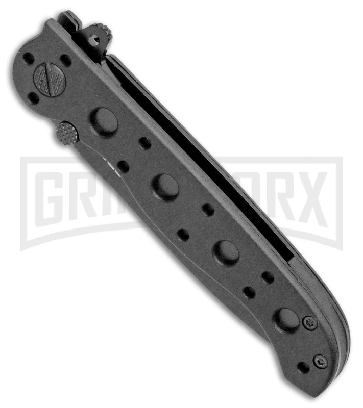 The CRKT M16-10KZ features a hollow ground spear point style blade with a plain cutting edge and a black EDP finish. The blade is easily opened with the dual thumb studs or a push of the Carson Flipper. The Teflon bearings at the blade pivot and an adjustable pivot screw allow for perfect blade action.