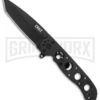 The CRKT M16-10Z features a hollow ground Tanto style blade with a partially serrated edge and a bead blast finish. The blade is easily opened with the dual thumb studs or a push of the Carson Flipper and a flick of the wrist. The Teflon bearings at the blade pivot and an adjustable pivot screw allow for perfect blade action.