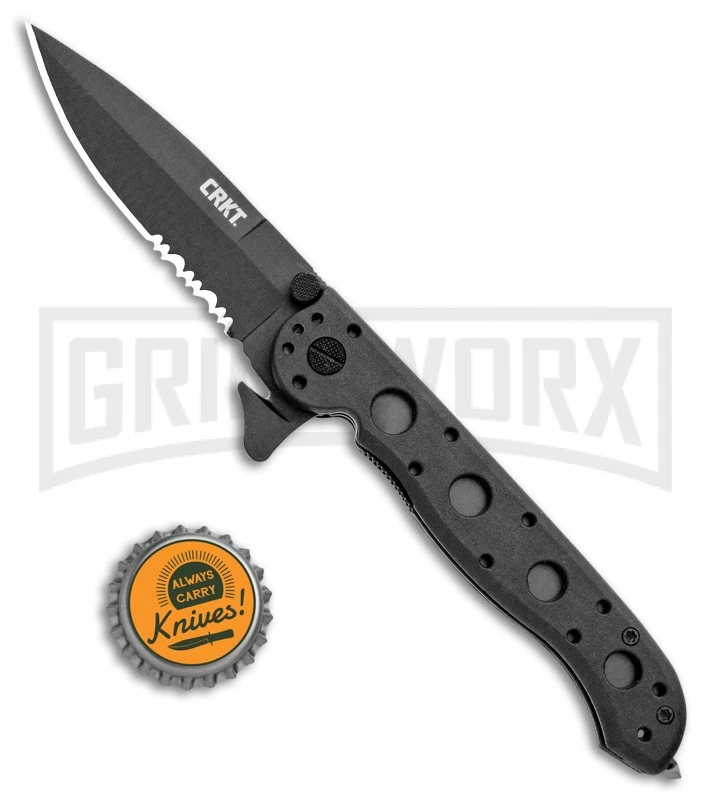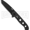 The CRKT M16-13ZLEK features a black Ti-Nitride finished AUS-8 stainless steel spear point blade with a partially serrated edge. The handle has black Zytel scales and a tip-down pocket clip. Unique to this model is a seat belt cutter on the Carson Flipper and a tungsten carbide window breaker at the base of the handle.