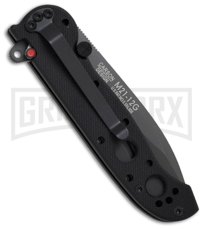 The M21-12G has a gray titanium nitride finished 8Cr14MoV stainless steel spear point blade with Veff serrations. One-hand opening is made simple with dual thumb studs and a Carson Flipper for quick deployment.