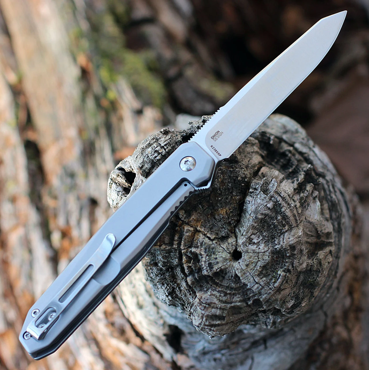 CRKT Facet A/O (K230XXP) – 3.37″ D2 Satin Drop Point Blade, Gray Stainless Steel HandleÂ