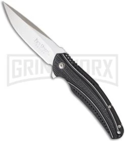 The Ripple K405KXP model is frame lock open build knives with stainless steel frames. In typical Ken Onion attention to detail, the frame lock does not create an unsightly gap in the right frame, but its cut is neatly integrated into the grip design of the frame, which is CNC machined with a complex “ripple” textured pattern plus 44 small lightening holes. The Ripple K405KXP receives a black titanium nitride coating, which we then hand buff to give a pocket worn look, that is to lightly reveal the underlying stainless steel on the high points.