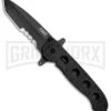 The blade is AUS 8 stainless steel, chosen for edge retention and durability, in non-reflective fine bead blast finish, with a Combined Razor-Sharp and Triple-Point Serrated edge. This steel can handle the most rugged cutting tasks and still be field sharpened.