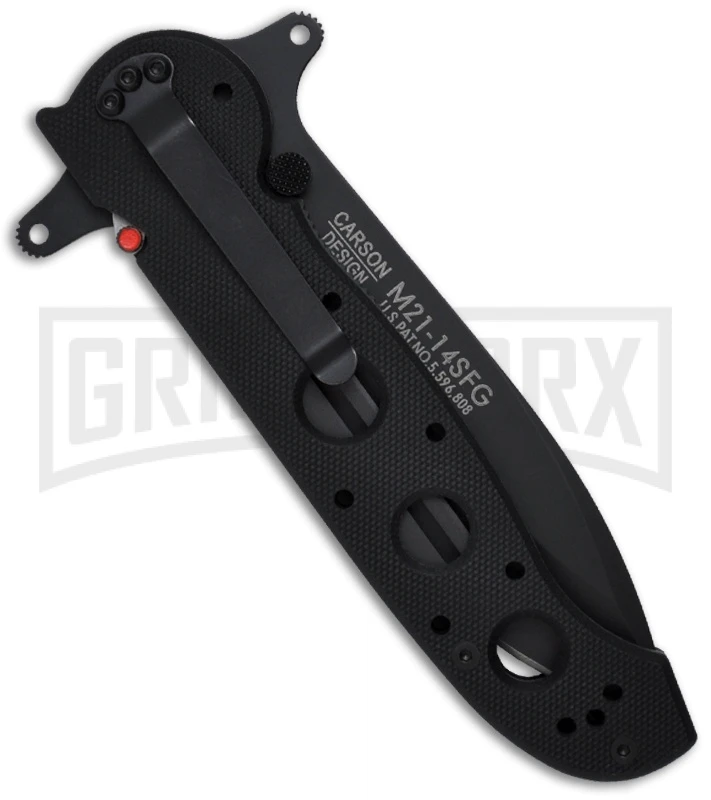 The Special Forces G10 models share a unique design offering a combination of Carson Series features requested by military procurement specialists. The deep-bellied spear point blades were specified because they offer maximum strength. The open build allows two Carson Flippers to be incorporated, resulting in a true hilt very rare in folding knives.