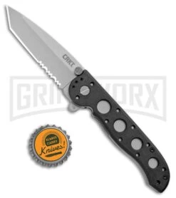 The CRKT M16-12Z features a hollow ground Tanto style blade with a bead blast finish and a partially serrated edge. The blade is easily opened with the dual thumb studs or a push of the Carson Flipper. The Teflon bearings at the blade pivot and an adjustable pivot screw allow for perfect blade action.